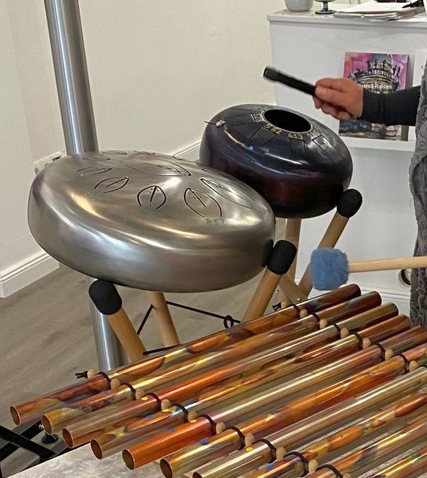 in Konzerten mit verschiedenen Instrumenten und Quarz Kristallkalangröhren